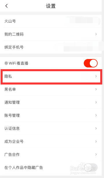 设置界面中,点击“隐私”