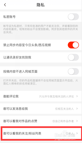点击“谁可以看我的关注/粉丝列表”