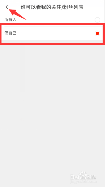 3、选择成“仅自己”,然后点击左上角返回即可