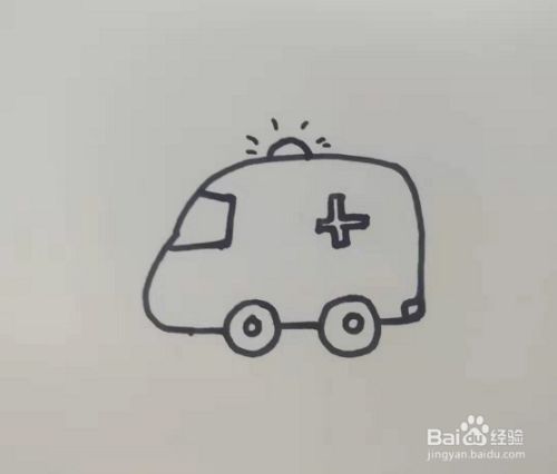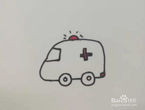 最后一步,就是上色啦,红色的十字,红色的车灯,车身是白色的,可以不用涂,这样简笔画的救护车就画好了,非常简单哦,最终的效果图如下,快来试试吧。