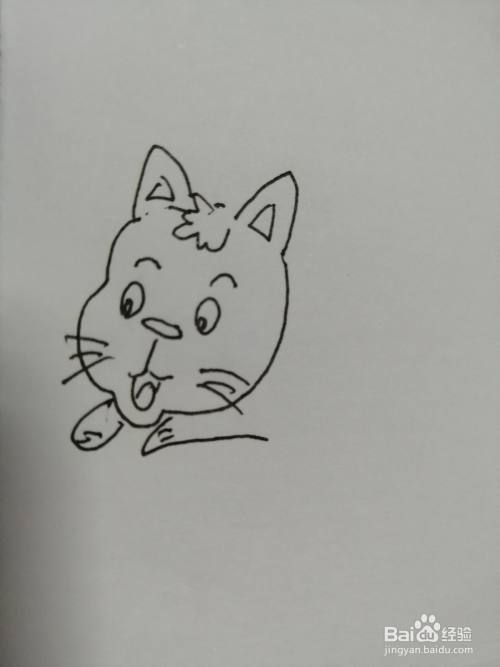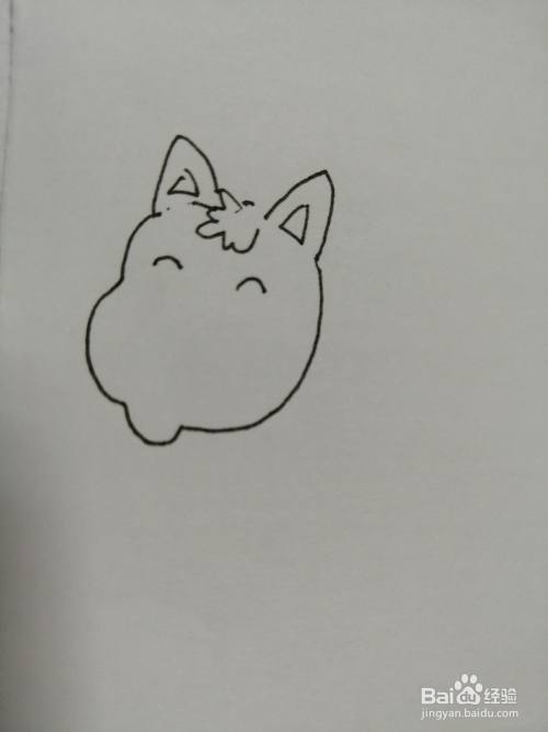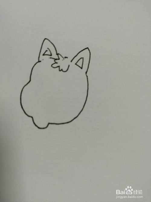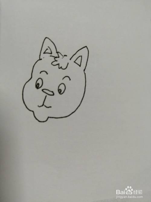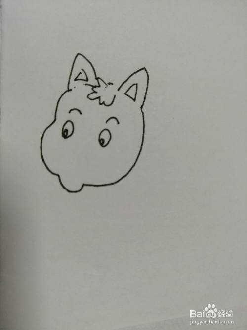 第一步,我们先画出简笔画可爱的小猫咪的头部和两只可爱的小耳朵,注意耳朵里面纹路的画法。