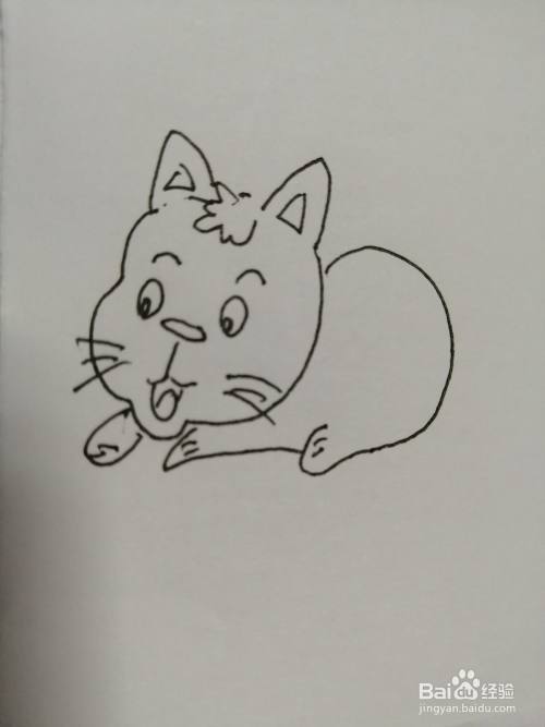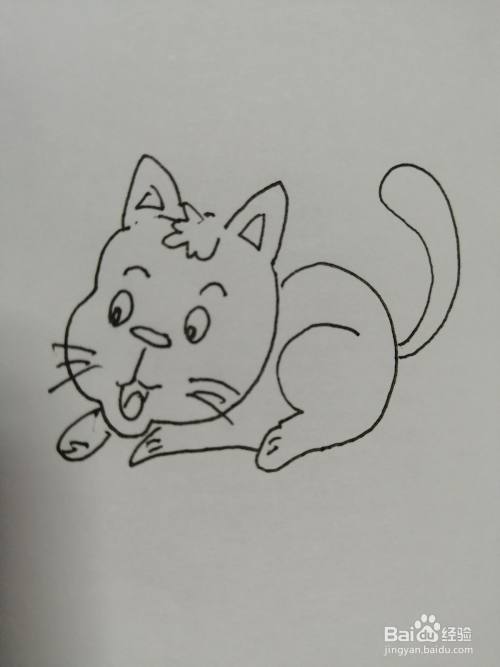 第八步,最后把简笔画可爱的小猫咪的小尾巴画出来。简笔画可爱的小猫咪就画好了。