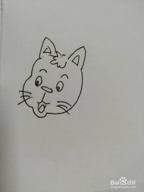 第四步,在可爱的小猫咪的大眼睛下面画出小鼻子和微笑的小嘴巴。