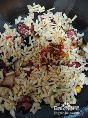 放入萝卜干和一勺辣椒油或(辣椒面)煸炒。
