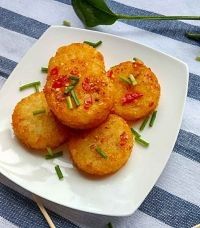 另取一个锅里放入少许油,放入剁椒爆香在加入炸出来的土豆饼翻炒均匀即可。