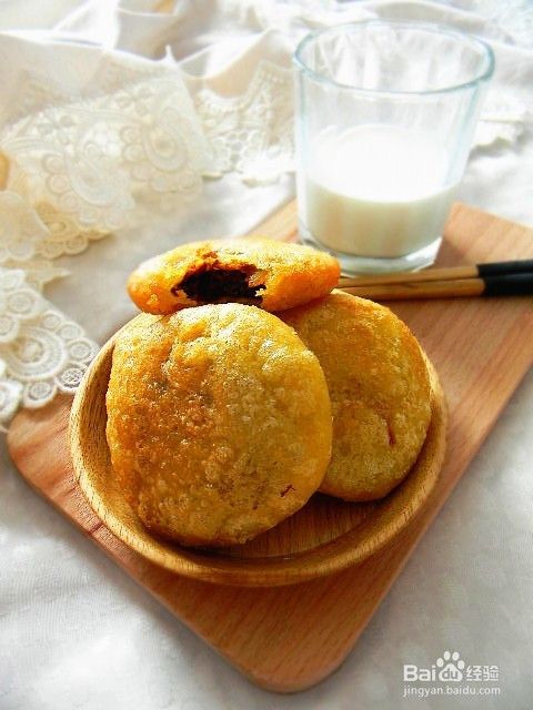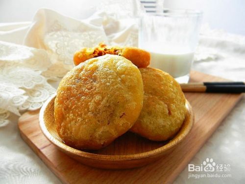 在收紧口,团圆,轻轻再次拍扁成约有1厘米厚的小饼。操作前热锅烧油