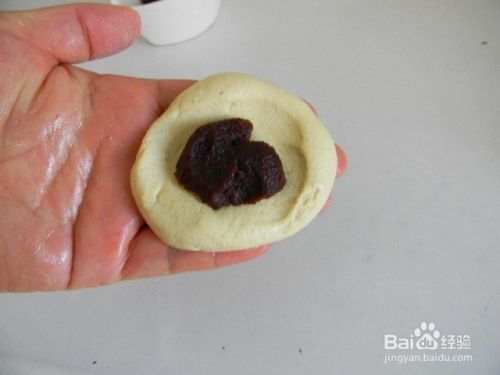 放入豆沙馅