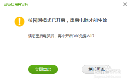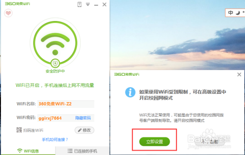 重新启动电脑,运行360WiFi和锐捷,校园网模式生效。