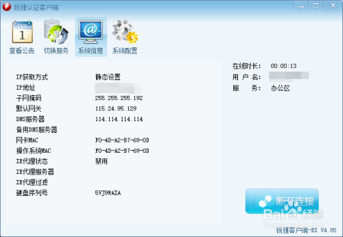 登陆成功,锐捷运行正常,不会出现自动升级的情况