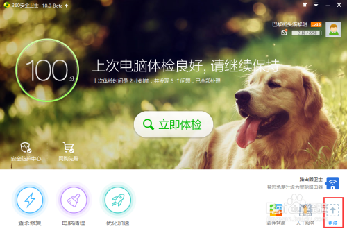 首先,下载360WiFi,打开360卫士首页,找到更多。