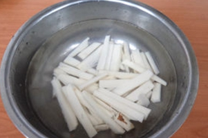 山药入锅炒,视情况加少许水,盖上锅盖烧一会儿。