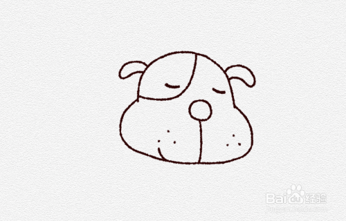 首先我们在纸上画一个小的半圆,下边画半个椭圆形,这样小狗的头部形状就画好了。