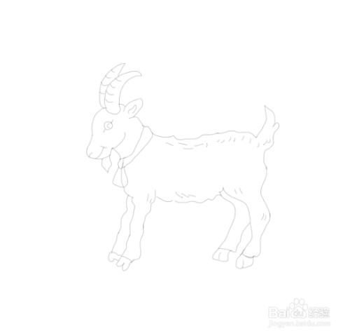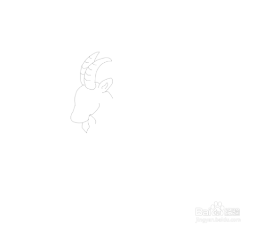 再在头部的基础上再画出山羊的脖子,然后再画出山羊的背部,如图所示: