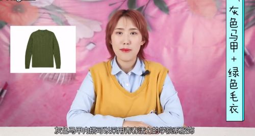 1搭配一:灰色马甲+绿色毛衣。