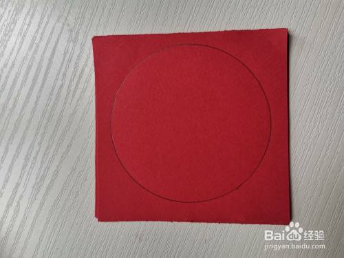 裁13张边长4CM左右的正方形红色纸,找一个圆形的物体放在上面,然后用铅笔沿着画一圈。