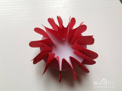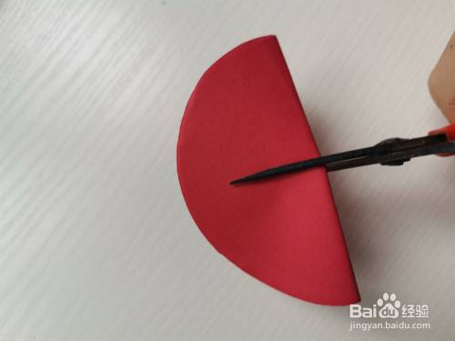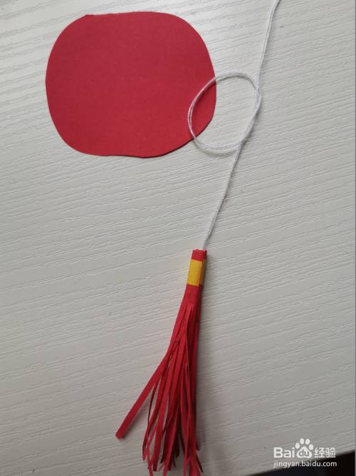 在流苏上面一段打个结,然后剪两外圆形或椭圆形的红色卡纸。