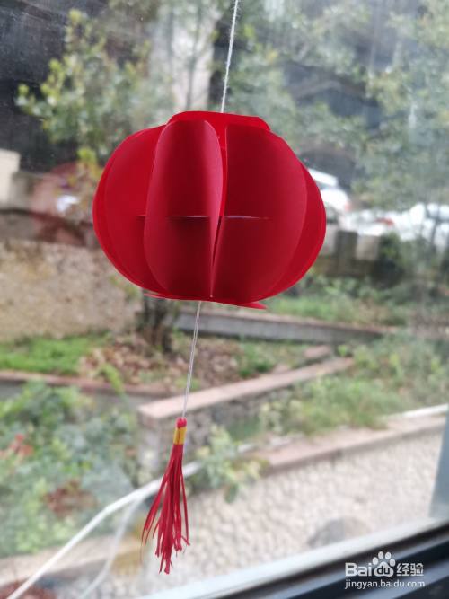 按下面把针从下面往上穿过去,上面再穿一个红色的圆片,这样的一个简单又好看的灯笼做好了。