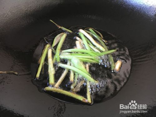 另外起锅,锅里放油,中火将小香葱(大葱)煸炒至金黄色,捞出不用,留葱油,大火将油烧至7/8成热。
