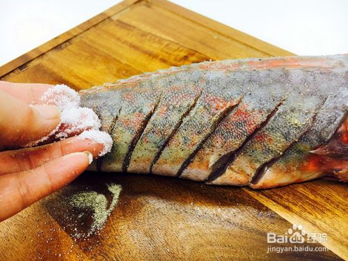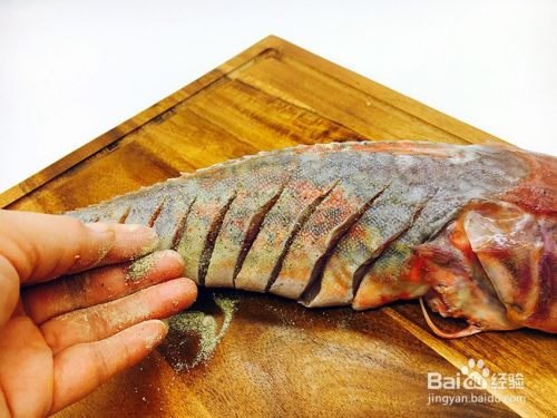 先在鱼的身上划几刀,然后用1勺左右的料酒涂抹在鱼的身上。