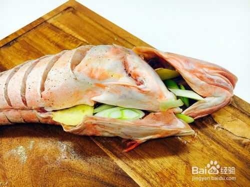将葱段、姜片塞在鱼腹里。第3、4、5、6的步骤是为了去腥和入味。鱼腌制20分钟。