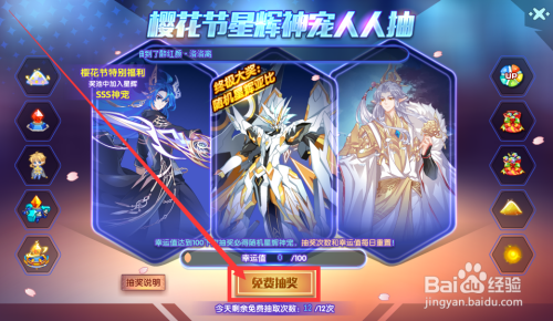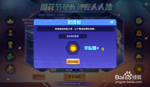 每次抽奖可积累幸运值,幸运值达到100后下次抽奖必定获得神宠。