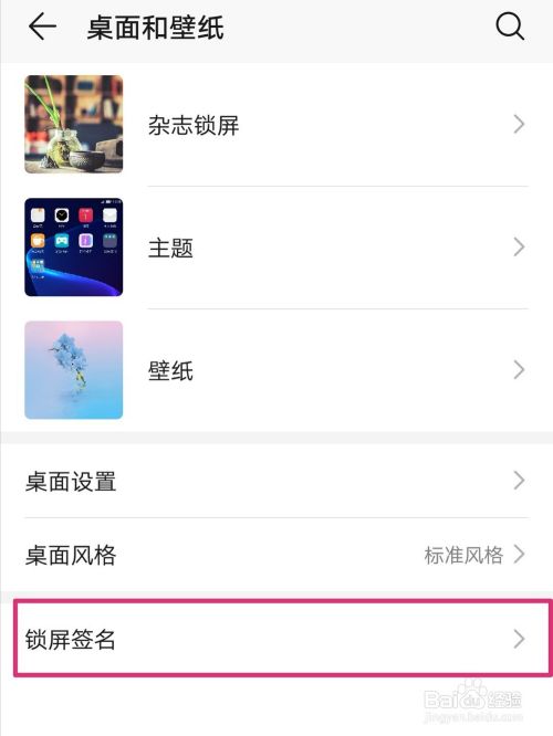 在“桌面和壁纸”界面,下拉至最后,点击“锁屏签名”
