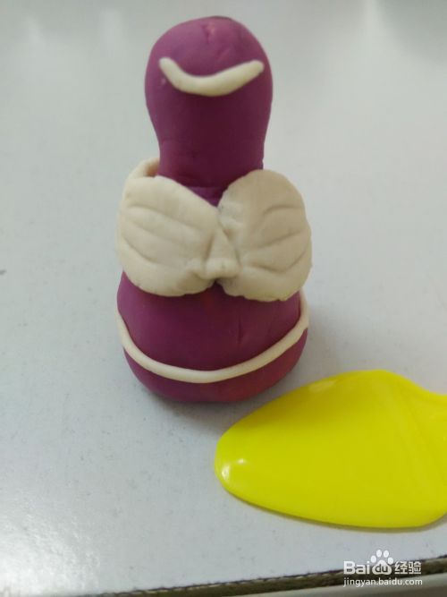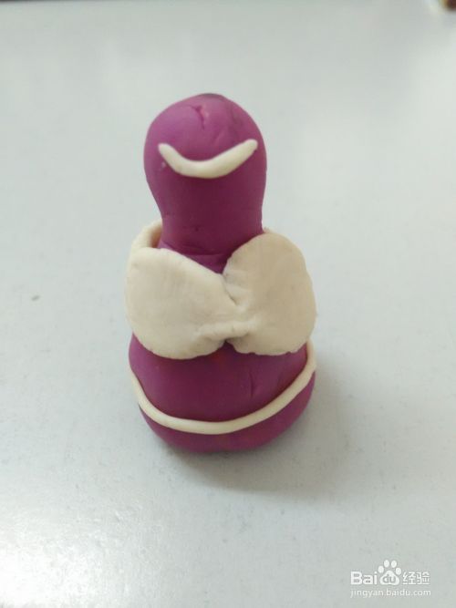 再搓一个短小的细白条,放在最上面,当领子处的花边。