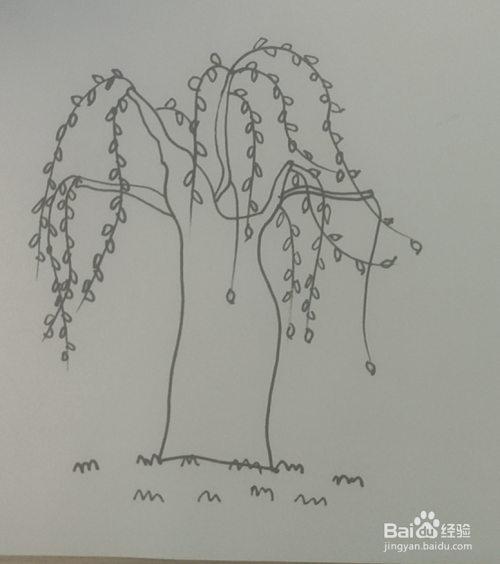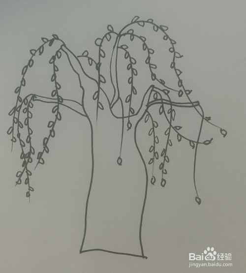 在枝干的上方画出柳条,因为非常细,画一条线即可。