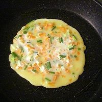 不粘锅烧热,刷少许油,舀一勺面糊倒入锅中,快速转动平底锅摊平了。我用电饭煲自带的饭勺,一勺刚好一个饼,饼最好摊的薄一点,熟的更快。