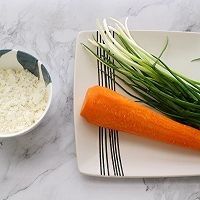准备食材,香葱摘掉腐叶,胡萝卜刮皮备用