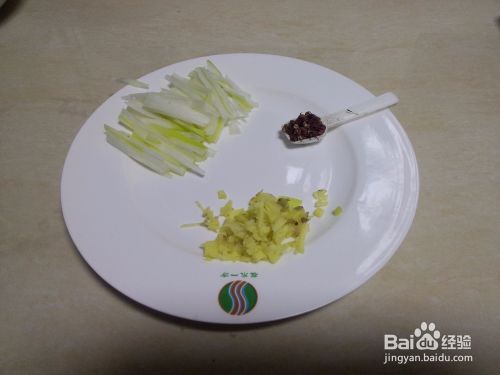 将葱切成丝,姜切成末,去适量花椒,放在盘中。