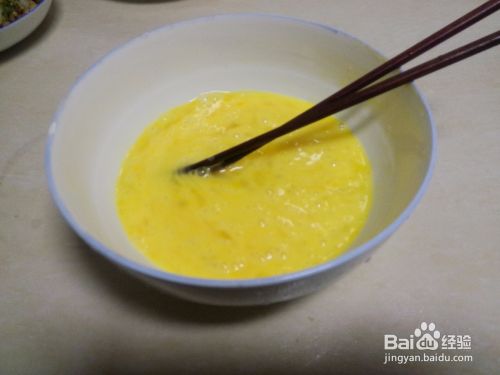 然后往锅内添加适量水,继续加热。将鸡蛋磕到大碗中,用筷子将鸡蛋搅拌均匀。