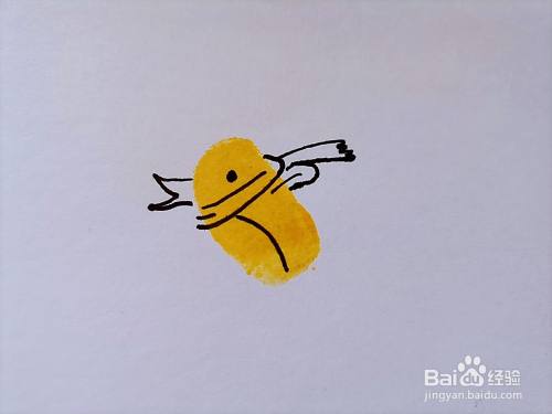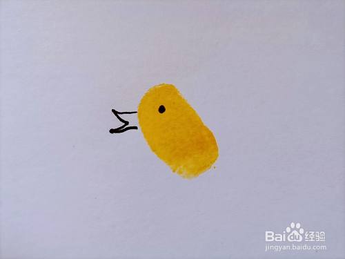 用食指在黄色印泥上粘上颜色,然后在白纸上印上一个食指印,如下图所示。