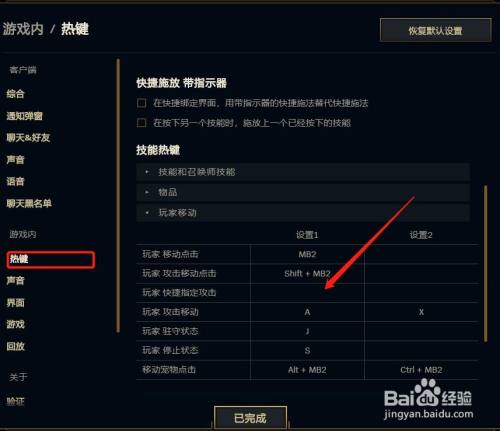 在左侧找到“热键”,再找到”快捷指定攻击“,设置一个你的常用游戏键位,然后即可配合鼠标指定敌方英雄,在团战中流畅的”走A“