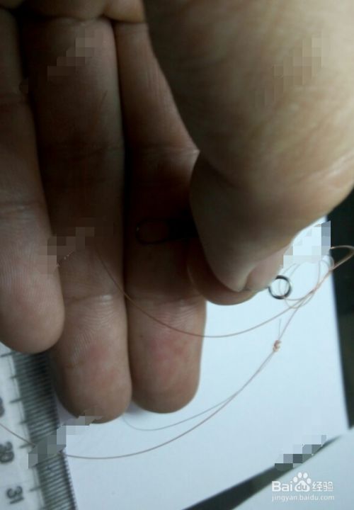 把主线一端对折穿过8字环形成一个圈,将对折端穿过线圈,再把8字环穿过对折端,调整8字环与相邻节点的距离为10cm ,将线头拉紧,并剪掉多余的线头。主线一端对折穿过8字环并将对折端穿过线圈。将8字环穿过对折端。拉紧。