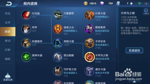 第四件装备选择出不死鸟之眼,这件装备开业有法术防御,同时可以提升白起的回复能力