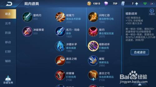 第五件装备选择出暗影战斧,暗影可以提升白起的留人能力,这么出可以快速切后排,是能抗能打