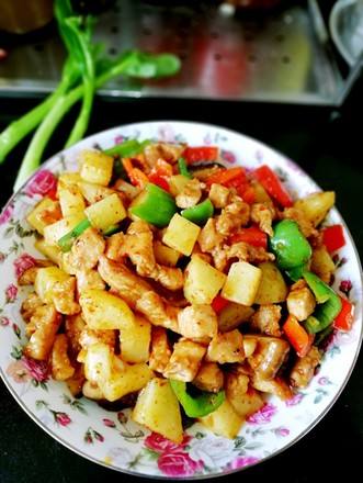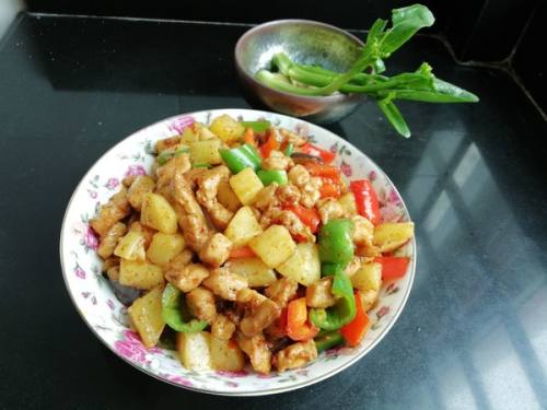 下鸡丁滑炒。