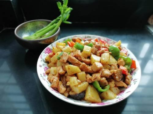 朋友送了几包四川风味的调料包,今天用了宫保肉丁调料包做了道酱炒鸡肉请她。