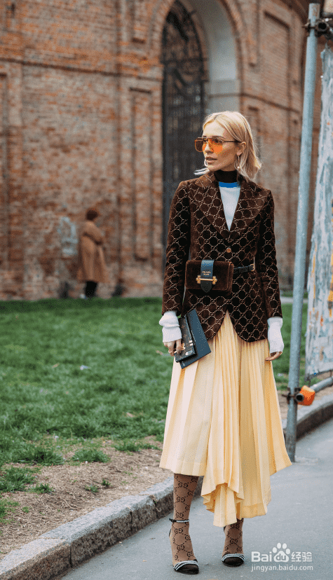色调温暖的米黄色长裙充满温柔大方的女人味,金属箔搭配呢子质感的笔挺西装充满了职场女性的知性,格纹更增添复古质感,搭配高领针织衫优雅十足。