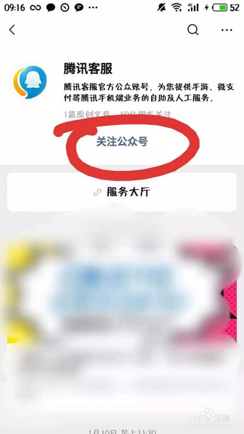 然后点击关注腾讯客服公众号,并进入聊天界面