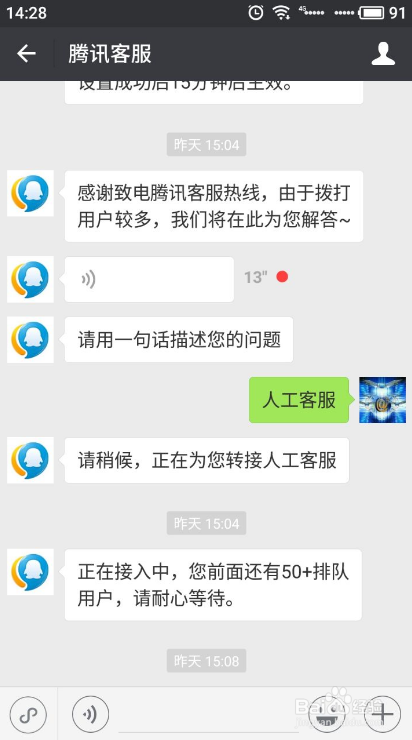 这里需要注意,微信关注腾讯人工客服公众号,是我们拨打人工客服电话绑定的微信号。否则会出现,召沟腊依然是智能客服荡讨。