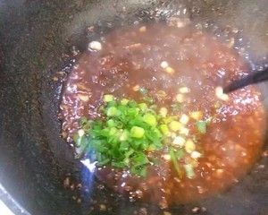 肉末炒出油,加蒜末,圆葱末。炒出香味加入调好的酱汁,少量糖,少许酱油