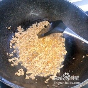 冷锅烧热后加油,比炒菜稍多一点。油热放入肉沫翻炒