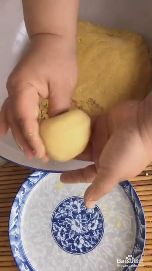 将面团分成小块,捏成窝头的形状
