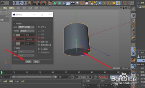 在轴对齐窗口中,将Y轴的百分比设为-100%(圆柱轴心在Y轴上),点击执行,即可。