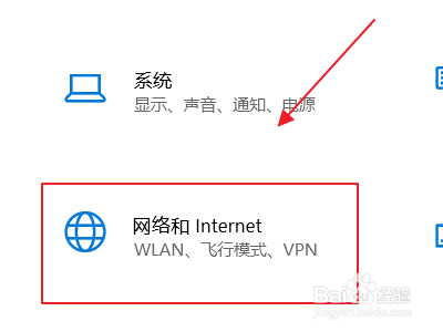1、打开左下角“开始”界面,找到设置,在弹出的“设置”界面中,找到“网络和Internet”,如图所示:
