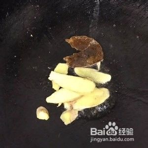 去除鹅煎出来的油后,加入适量花生油,放入姜片和陈皮