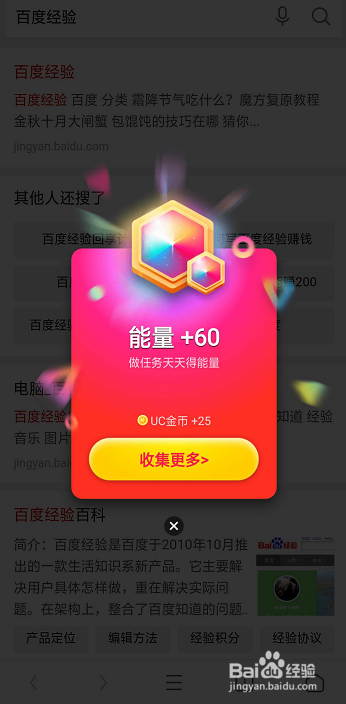当我们完成两次搜索后,直接就会弹出集能量的窗口了。
