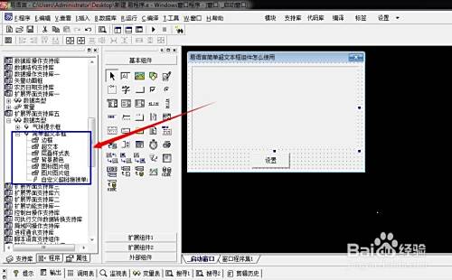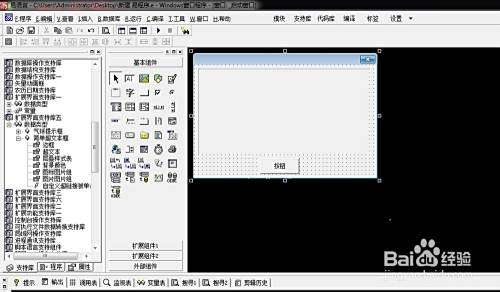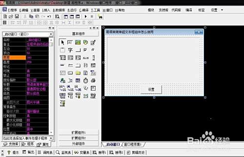 在窗口上,绘制简单超文本框组件,按钮组件各一个。调整这两个组件的大小和位置。如图: